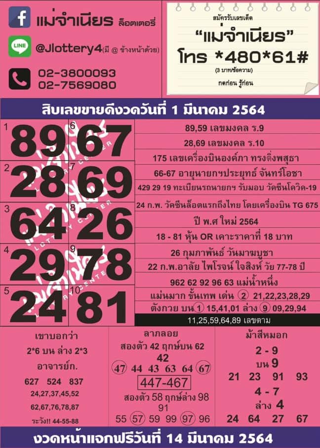 - Facebook : แม่จำเนียร ล็อตเตอรี่